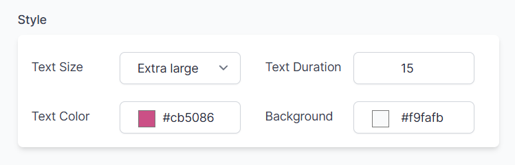 Text Color – Customize the color of the message using HEX codes (e.g.,