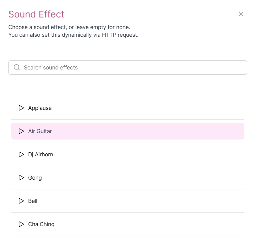 - Preview – Click to hear how the sound effect will play.